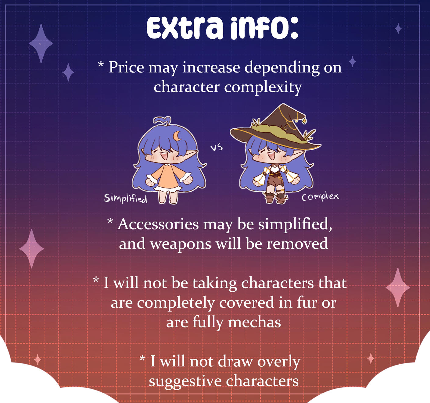 Complex Versions: The outfit will be drawn closer to your character outfit. This increases the price by 5-10 dollars.